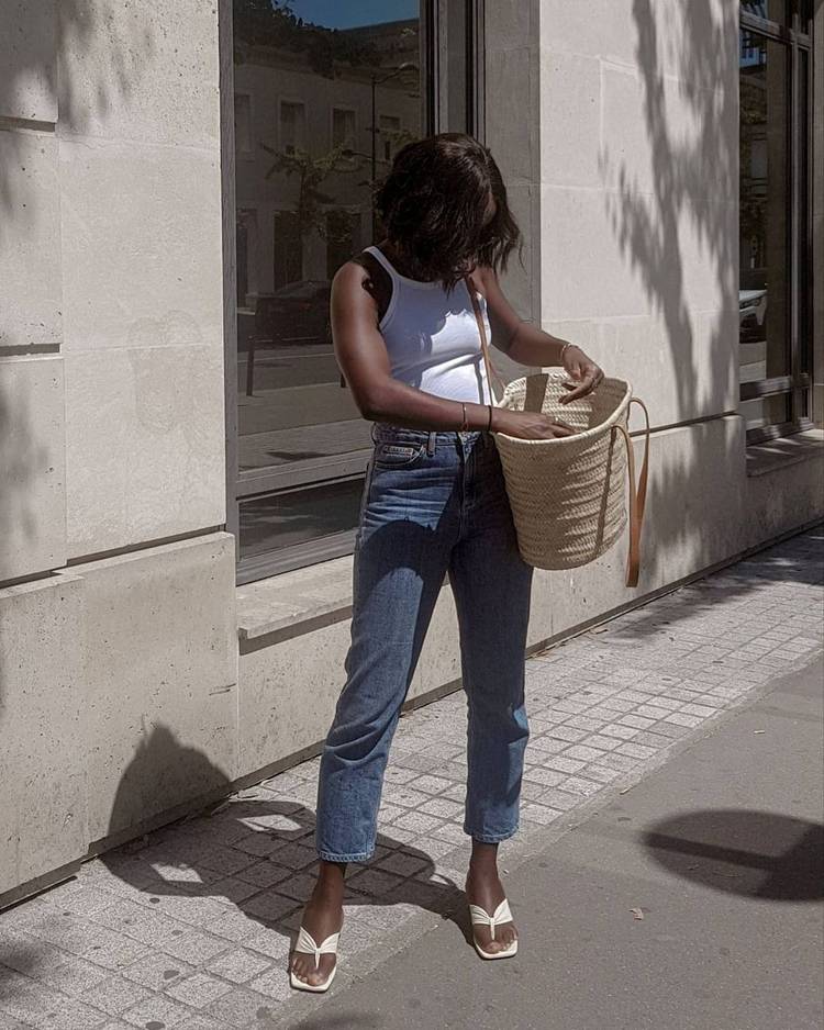 Maieul simplu, alb arata incredibil de bine cu piesele din denim sau chiar cu o fusta din piele. E extrem de versatil, pune in valoare bronzul si e comod pe timp de vara. Imbraca-l cu o pereche de jeansi cu talie inalta si sandale cu toc.