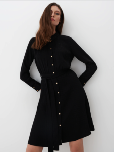 Fiecare femeie are nevoie de o rochie neagra in garderoba sa, nu-i asa? Este o rochie extrem de versatila, care se preteaza in multe situatii din viata ta: la facultate, la birou, intr-un mediu mai serios, sau chiar si la o iesire cu prietenii. Este o rochie de tip camasa, ceea ce inseamna ca va avantaja mai multe siluete. Cordonul iti va marca talia, iar daca doresti, il poti inlocui cu o curea.