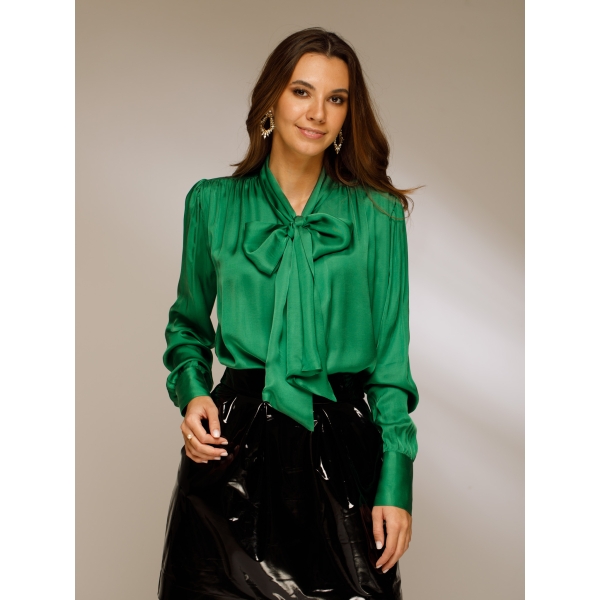 Indiferent daca alegi sa o porti cu o fusta sau cu pantaloni, camasa cu funda fucsia te va ajuta sa radiezi pur si simplu. Funda eleganta si feminina iti permite sa schimbi stilul acestei camasi in functie de modul in care alegi sa o porti: o poti purta desfacuta, legata lejer sau intr-o funda sofisticata. Cele doua nuante fermecatoare – fucsia si verde – sunt ideale pentru o tinuta colorata si vibranta pentru Paste.