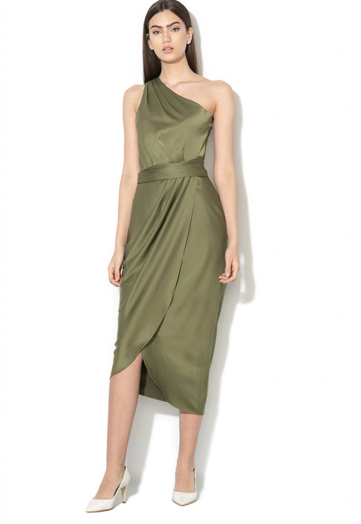 Iata o varianta dintre cele mai clasice de rochii pe un umar! Insa clasic in cel mai elegant sens al cuvantului! O astfel de rochie e perfecta la ocazii si evenimente, alaturi de sandale cu curele fine si eventual diademe cu flori naturale.