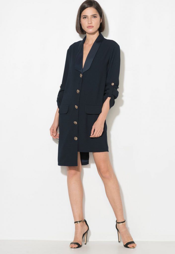 Cum se poarta buzunarele la rochii? Se poarta si asa: elegant, ladylike, business-style. Inspiratia este sacoul barbatesc, iar rochia stil blazer sau sacou este o variante ideala de vara. Poart-o la birou cu pantofi cu toc sau cu pantofi cu calapod barbatesc, dar si seara, alaturi de sandale cu toc si un clutch-box metalic.