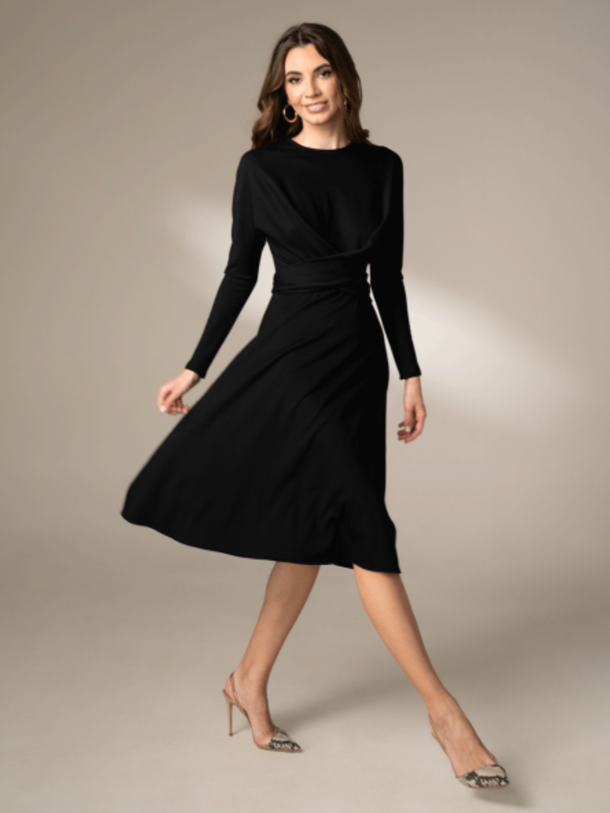 Fiecare femeie are nevoie de o rochie neagra in garderoba sa, acesta este un adevar cunoscut de cele mai multe dintre noi. Dar fiecare femeie are nevoie si de o rochie clos, cu maneca lunga, care se preteaza intr-o multime de situatii si care poate fi accesorizata dupa bunul plac. Daca iti doresti o tinuta cu atitudine, o poti purta cu o geaca biker si cu botine cu toc gros. Daca esti insa la polul opus si iti doresti o tinuta feminina, o poti accesoriza cu dresuri si cu bijuterii delicate. Este una dintre cele mai versatile rochii, care iti avantajeaza corpul si iti alungeste optic silueta. Ce poti sa iti doresti mai mult decat atat?