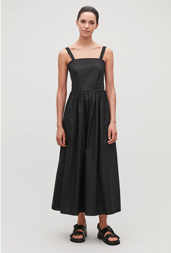 Cu fronseuri elegante, in talie, cu bretele si lungime pana la glezna, rochia aceasta cu linie retro este o alta alegere ce poate fi purtata in orice ocazie.