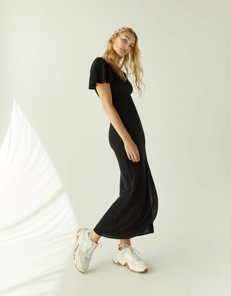Iata si rochia din jerseu despre care vorbeam in deschiderea materialului. āMergeā cu tenisi, cu papuci, cu sandale flat sar platforme si cam in orice circumstanta.