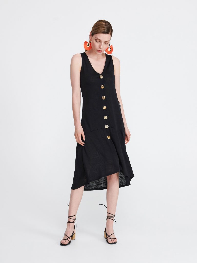 Daca esti adepta trendurilor, alege astfel de rochii negre pentru vara aceasta! Rochiile cu nasturi pe mijloc de sus pana jos au revenit la moda!