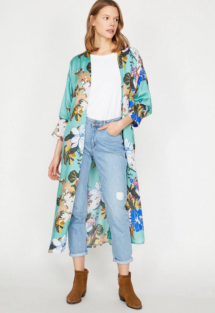 Se poarta chimonourile lungi, ce imbina linia de chimono cu ideea de caftan. Ce imprimeuri se poarta in acest caz? De la floral, la geometric, de la abstract, la print de esarfa si pana la amestecurile de pattern-uri. O astfel de piesa, alaturi de blugi, tricou basic si botine stil cowboy, este perfecta in outfit-urile cool de vara.