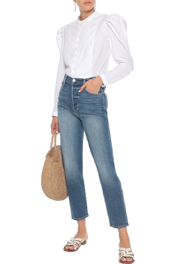 Frame stie bine cu denimul. Brandul cult din Los Angeles se inspira de la reperele de stil din anii saptezeci, precum Bianca Jagger si Stevie Nicks. Sunt atat de confortabili ca vei vrea sa dormi in ei. Denimul e moale, dar ofera o silueta puternica, ce atrage atentia in zona taliei. Stau bine pe posterior, dar nu se strang atunci cand stai jos. Se potrivesc in tinute in stilul anilor nouazeci, asa ca poarta-i cu tricouri albe sau maiouri cu imprimeu rock. Cat despre incaltari, Dr Matens sunt mereu o optiune castigatoare.