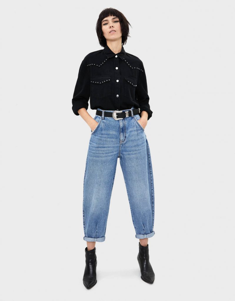 Niciodata nu m-au dezamagit jeansii de la Bershka – sunt comozi, rezistenti si au un fit surprinzator de bun pentru un brand high street. Am testat mai multe stiluri (de la mom jeans, la skinny), dar cei cu talia inalta mi-au placut cel mai mult. Iti sugerez sa-i porti cu cel mai cool top scurt retro pe care-l ai si pantofi sport butucanosi.