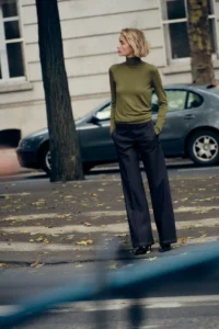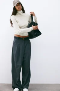 Combina-i cu un top mulat sau scurt pentru a echilibra forma larga a pantalonilor. O bluza usor bagata in pantaloni functioneaza bine pentru a evidentia talia. Cizmele sau pantofii cu toc pot ajuta la alungirea picioarelor”, explica fashionista Caroline Baudino.