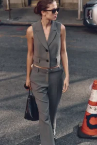 Incearca sa asortezi vesta cu pantaloni de costum sau cu o fusta tip creion pentru o tinuta chic.