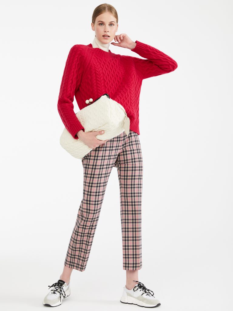 Doua texturi noi sunt in tendinte pentru toamna-iarna 2019-2020 in materie de pantaloni: pielea si tesaturile cadrilate. Combina-i cu blazere, cu stofe, cu elemente basic, cu texturi matasoase si poarta-i smart-casual.