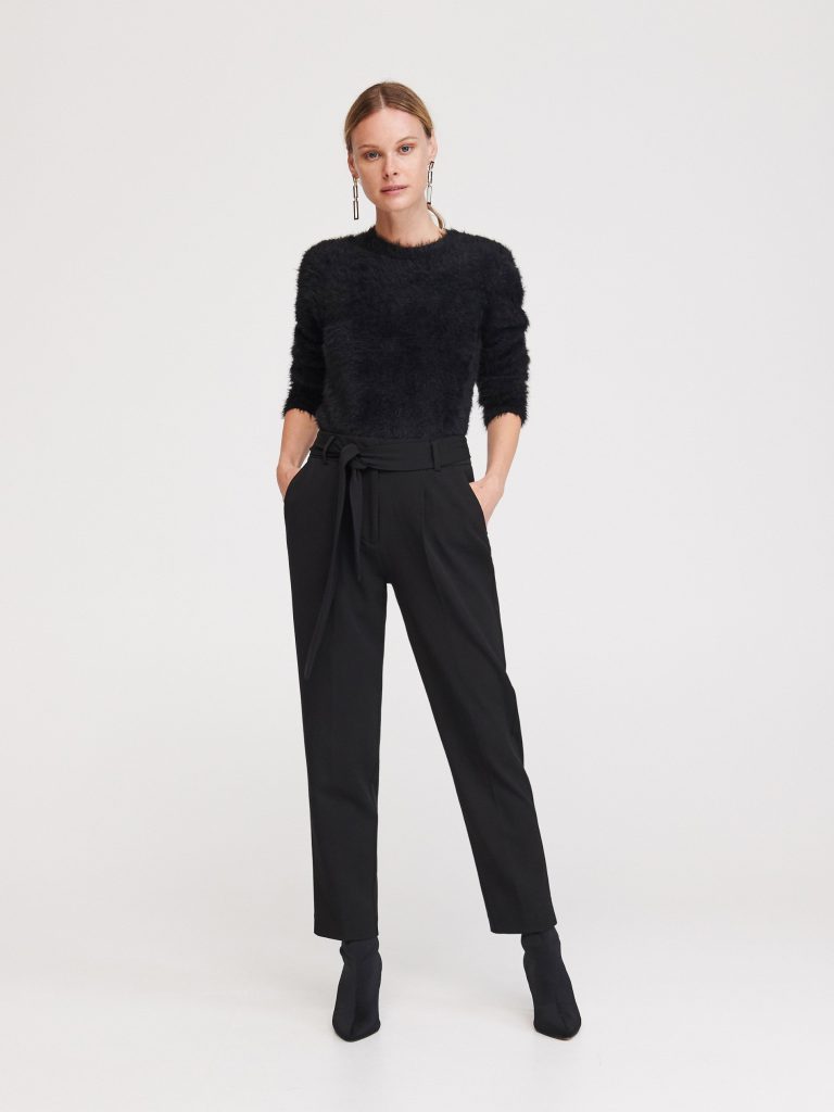 Alcatuieste tinute chic pentru aceasta toamna cu ajutorul pantalonilor negri lungi. Se poarta cu talia inalta, croiti amplu, si sunt atat de versatili, incat ii poti purta in orice moment al zilei.