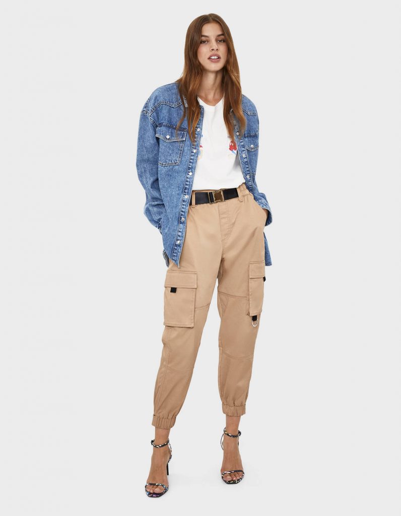 Pentru a obtine tinute de toamna in trend, alege linia utilitariana. Imbina pantalonii Cargo, cu multe buzunare, cu geci din piele, pantofi cu toc si bijuterii pretioase.