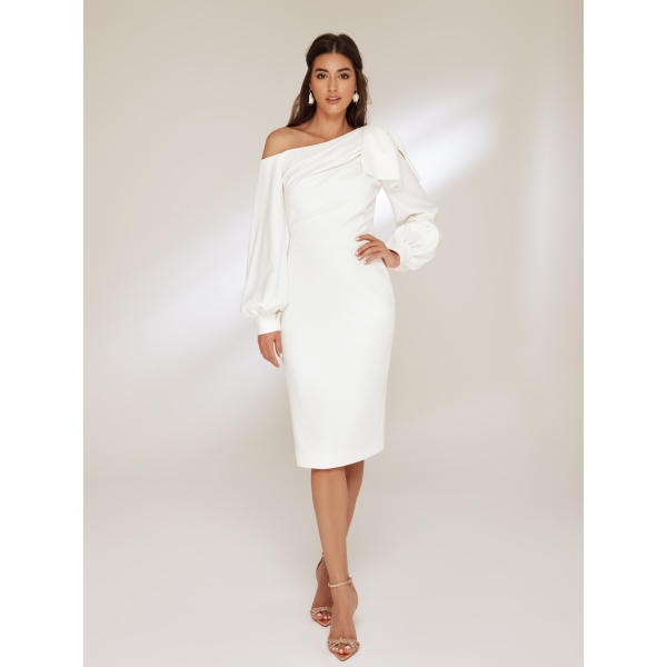 Daca mediul in care lucrezi nu este conservator sau ai nevoie de o idee pentru o petrecere romantica in doi, poti alege aceasta rochie mai scurta, cu umerii goi, care iti pune in valoare senzualitatea: