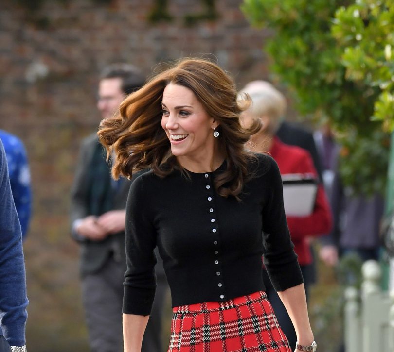 Kate arata superb in aceasta fusta plisata Emilia Wickstead, pe care a asortat-o cu un cardigan clasic si o pereche de cizme inalte, din piele intoarsa. Ne-a dovedit ca e la curent cu cele mai recente trenduri si se pricepe de minune sa le reinterpreteze in stilul propriu.