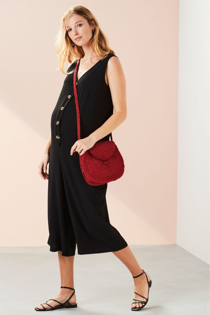 Una dintre cele mai comode tinute pentru femei gravide este alcatuita din salopeta larga. Un overall larg, midi, alaturi de geaca din piele intoarsa si sandale stil papuci sau pantofi androgini e o varianta chic!