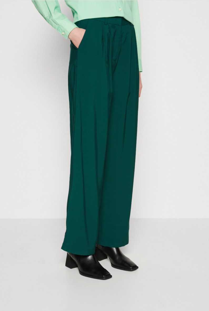 Pantalonii wide leg ma poarta cu gandul direct la stilul elegant si lejer al frantuzoaicelor. Ii gasesc ideali atat pentru birou, cat si pentru viata de zi cu zi. Ii poti purta alaturi de o camasa, de un blazer relaxat, un top special sau chiar impreuna cu un tricou basic din bumbac. Vei obtine un look chic, care nu se va demoda niciodata.