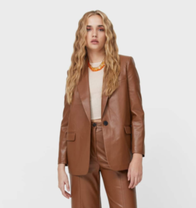 Spre deosebire de clasica piele neagra, pielea ecologica maro ofera oricarei tinute acel aspect glam si rafinat, dar nu neaparat clasic. Poti potrivi un sacou din piele maro cu o pereche de pantaloni asortati sau poti include in tinuta un singur element din acest material, care va scoate din anonimat alte piese basic din garderoba ta.