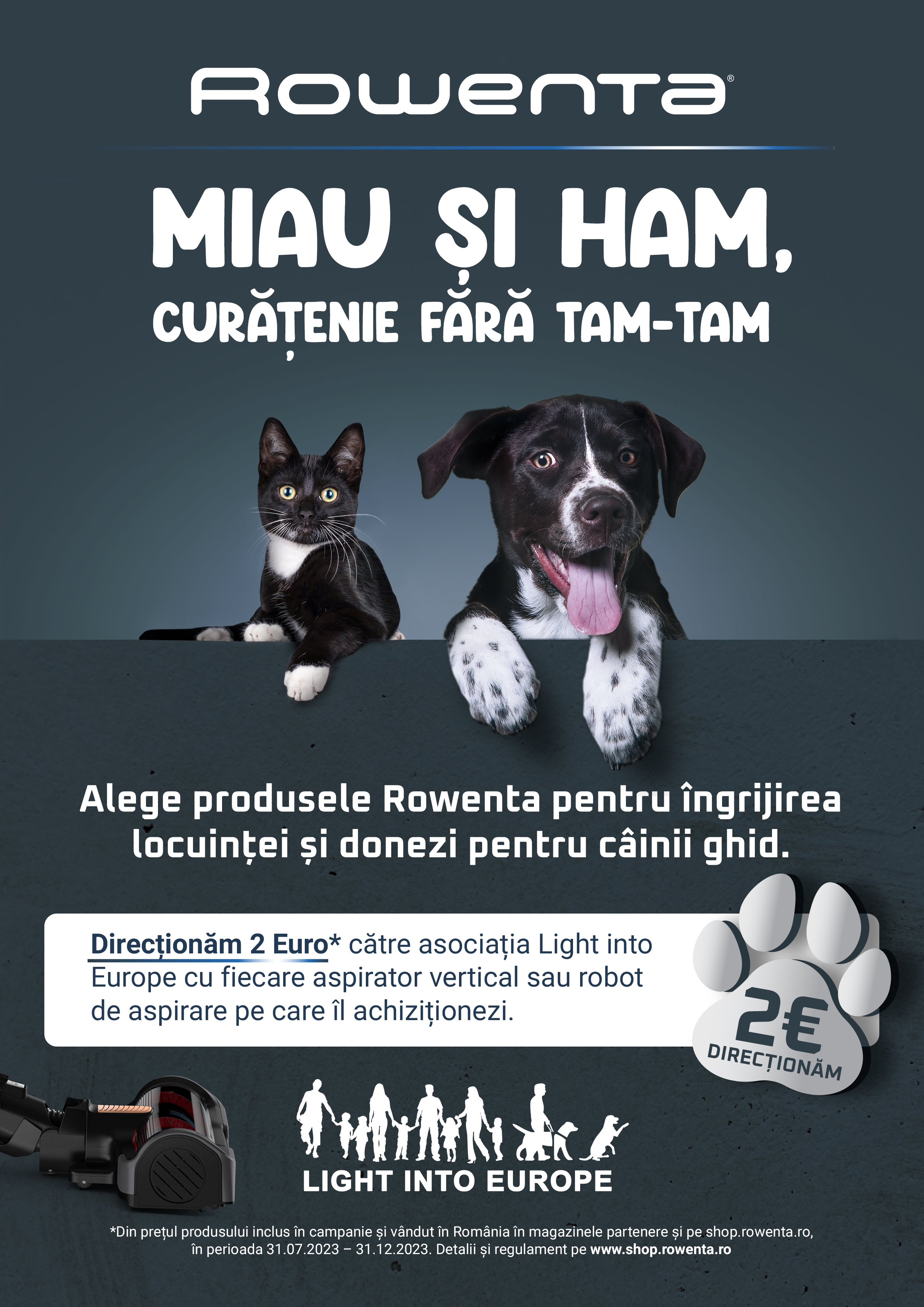 Prin campania de responsabilitate sociala „Miau si ham, curatenie fara tam-tam”, Rowenta Romania face un gest de solidaritate pentru persoanele nevazatoare”.