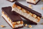 Se scot samburii de la curmale si se toaca marunt, impreuna cu caisele si ciocolata alba. Se ia o oala mica in care se pun la foc moderat siropul de artar, untul de migdale si curmalele. Se tin pe foc timp de 10 minute, pana se obtine un amestec lipicios.