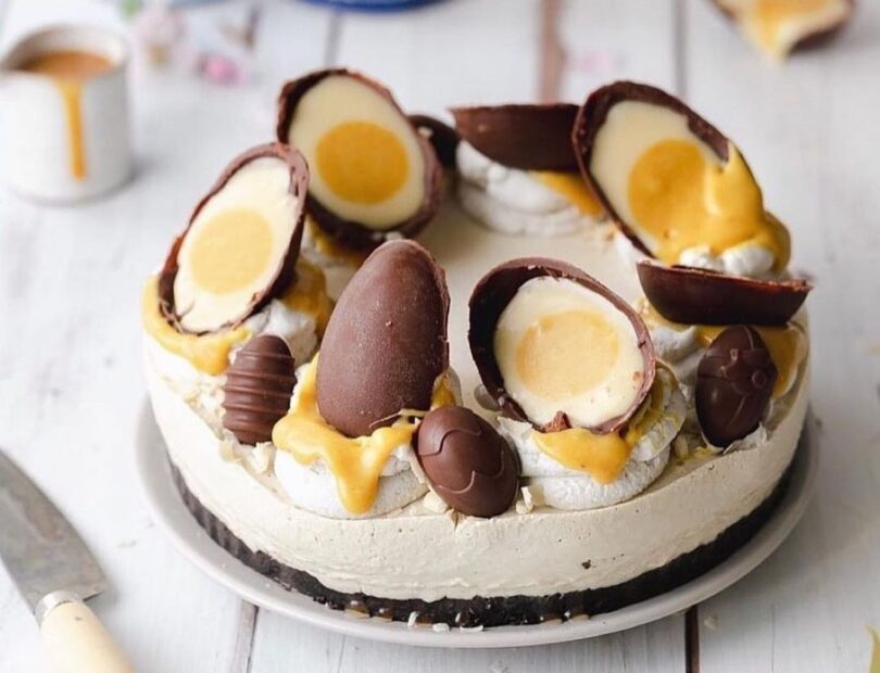 Reteta de prajitura cu branza este foarte simplu de facut si poti folosi mini oua de ciocolata pentru a-i da un aer festiv, de sarbatoare.
