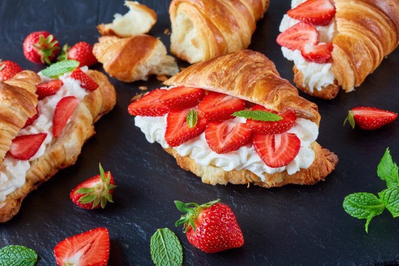 Ingrediente pentru croissant cu crema de branza si fructe de padure: