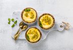 Intre timp, intr-un caston se bate smantana pana cand incepe sa se intareasca si sa formeze varfuri. Daca doresti, poti sa adaugi o lingura de zahar pudra sau de sirop de artar.