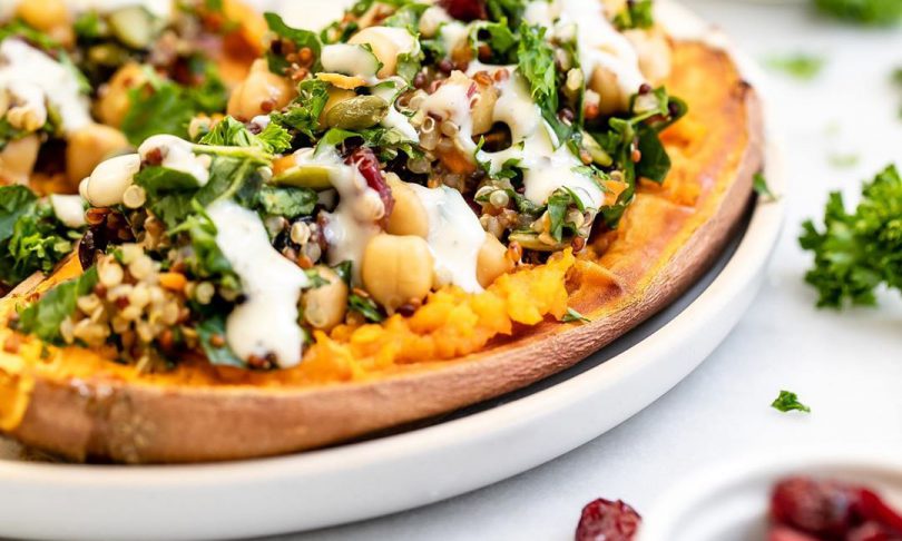 O jumatate poate fi completata de arome dulci de tahini, curmale si seminte de dovleac, iar cealalta parte poate fi savuroasa, in asociere cu avocado, ceapa rosie si coriandru. Este mai simplu sa coci cartoful dulce cu o seara inainte iar dimineata sa-l incalzesti si sa adaugi toppingurile. Iata doua modalitati de a pregati un cartof dulce: