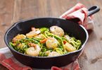 Continutul ridicat de omega-3 din aceasta reteta sustine sanatatea creierului si reduce inflamatia din organism. Molly Thompson scrie in cartea sa, „The Anti-Inflammatory Diet Made Simple”, ca reteta furnizeaza un continut dublu de omega-3 cu tilapia, peste inrudit cu bibanul, si crusta de migdale. „Crusta este crocanta si aromata, iar legumele sunt fragede, si totul se gateste perfect intr-o singura tava!”, arata ea.