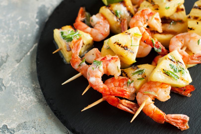Daca te-ai plictisit de frigaruile obisnuite cu pui, trebuie sa dai o sansa acestei combinatii: creveti cu ananas si cartofi dulci. Gustul dulceag al ananasului pe gratar si al cartofilor dulci este completat perfect de aroma crevetilor.