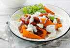 Se scot de la cuptor si se pregateste sosul, amestecand ingredientele pana cand acestea se omogenizeaza.