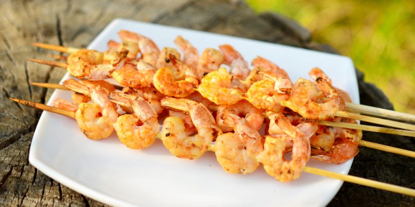 Se pun pe grill timp de 3 minute, apoi se intorc pe cealalta parte si se gatesc pana cand crevetii devin opaci si sunt bine patrunsi.