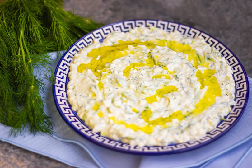 Daca iti place tzatziki si daca iti place hummus-ul, atunci cu siguranta acest hummus cu sos tzatziki va deveni preferatul tau. Este foarte proaspat, cu multa savoare si nu este asa de acru cum este sosul tzatziki.