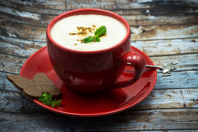 Menta este benefica pentru sanatatea digestiva, iar in combinatie cu ciocolata poate sa rezulte o bautura perfecta. Un latte cu ciocolata si menta este perfect pentru zilele in care vrei sa incerci ceva nou, ca sa mai schimbi meniul.