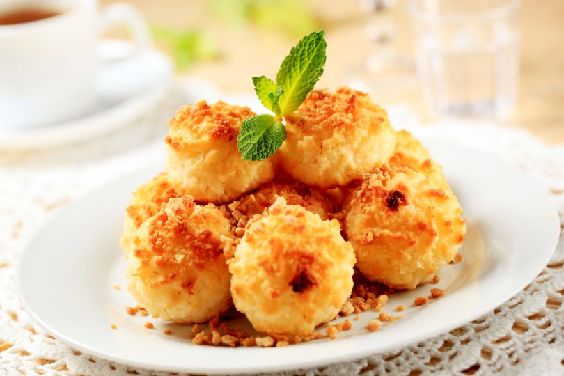 Se ia o tava de copt, se tapeteaza cu hartie de copt si se pun 18-20 de mingi de aluat, lasand cate 1 cm distanta intre fiecare. Se aplatizeaza usor, astfel incat sa capete o forma rotunda.
