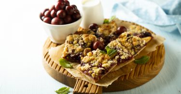 Tarta cu visine si topping crocant, un rasfat de sezon super rapid!