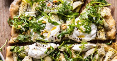 Pizza cu pesto, anghinare, rucola si burrata, o combinatie surprinzatoare