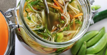 Supa de taitei cu pui si susan la borcan