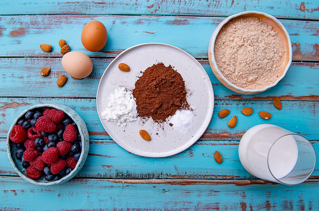 Amestecam intr-un bol faina cernuta, cacao, praf de cop, bicarbonat si sare.