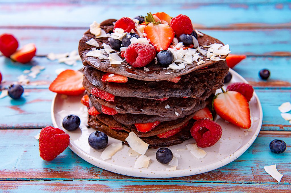 Incalzim o tigaie si o ungem cu ulei de cocos. Turnam cam 1/4 cana din compozitie pentru fiecare pancake. O gatim timp de 4 minute sau pana cand incepe sa faca bule si o intoarcem, pentru inca 1-2 minute. Continuam pana terminam toata compozitia.