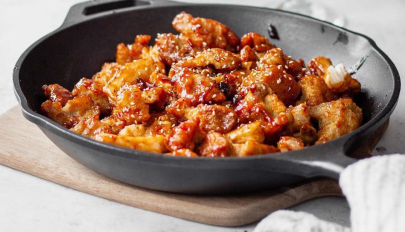 La final, pune puiul intr-un bol, lasa-l sa se raceasca si rupe-l in bucatele. Poti presara seminte de susan deasupra. Foloseste puiul coreean dulce-acrisor la garnituri de tipul piure, orez sau legume la tigaie. Sau poti face un taco – de ce nu?