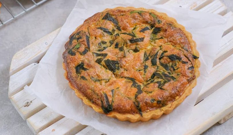 Vei sti ca tarta este gata atunci cand doar centrul mai este putin moale, iar exteriorul este complet copt. Inainte de a taia felii de quiche, lasa tarta sa se raceasca timp de o ora, la temperatura camerei. Daca ai rabdare, o poti lasa la racit peste noapte, in frigider.