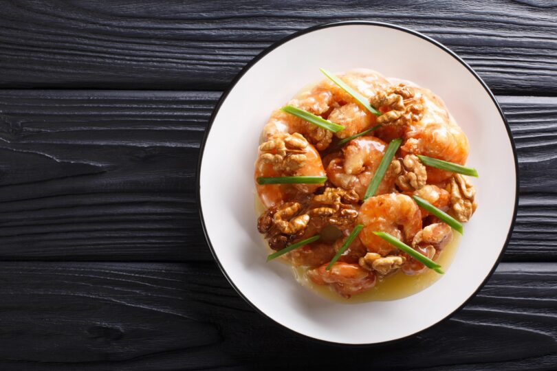 Crevetii cu miere si nuci sunt un fel de mancare cantoneza de inspiratie occidentala, care consta in creveti intr-un sos pe baza de maioneza, serviti cu nuci caramelizate, si se serveste in mod obisnuit in mesele de banchet chinezesti. Este posibil ca acest fel de mancare sa isi aiba originea in Hong Kong, inainte de a fi introdus in Statele Unite in anii 1980 si 1990. Crevetii cu nuci se mai numesc uneori creveti „milk oil” sau nai yóu xiā, datorita sosului cremos folosit.