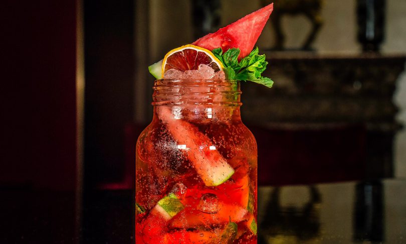 La final, toarna cocktailul in patru pahare si decoreaza-le cu cateva felii subtiri de lime sau lamaie si cateva frunze de menta proaspata. Pentru ca menta sa isi elibereze aromele intense, „bate” frunzele in palma de cateva ori sau loveste-le de marginea paharului.
