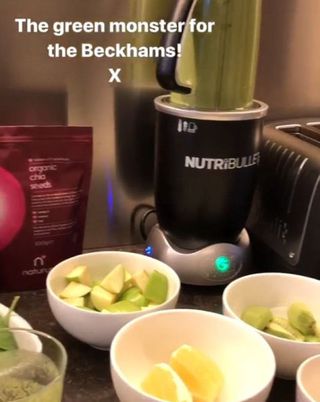 Ea a marturisit ca bea in fiecare zi putin otet de cidru de mere si apoi continua cu un smoothie verde, foarte sanatos. Victoria a postat o fotografie in care robotul sa de bucatarie este inconjurat de mai multe castroane care contin fructe proaspete, taiate.