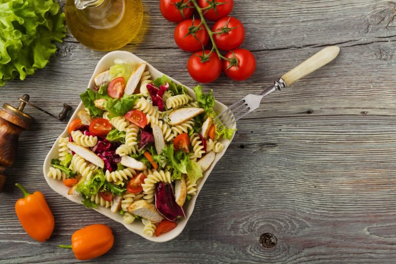 Ingrediente pentru salata de paste cu parmezan si vinegreta de ierburi aromatice: