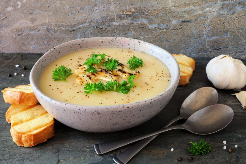 Nimeni nu vrea sa stea o vesnicie in bucatarie, tocmai de aceea iti propunem o reteta de supa-crema de conopida aromata, care se prepara extrem de usor si are un gust divin. Reteta face parte din cartea de bucate a chef-ului american Sam Way.