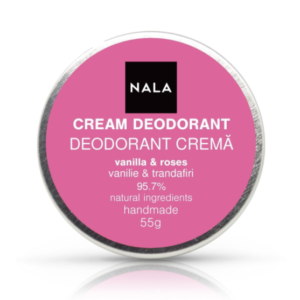 Deodorantul crema de la NALA contine amidon din porumb, unt de shea, bicarbonat de sodiu, ulei de cocos si alte cateva ingrediente blande. In plus, are un miros discret si diafan de vanilie si trandafiri. Iar daca nu esti cea mai mare fana a acestor arome, pe site vei gasi o multime de alte variante fresh sau fructate!