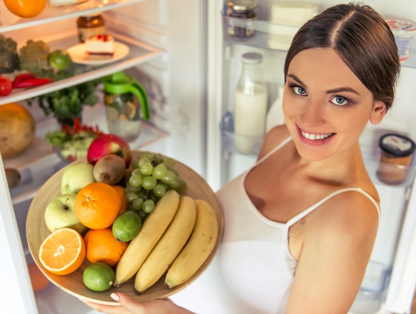 Acest truc te ajuta sa ai mese sanatoase pentru toata saptamana, fara sa cheltui o avere. Tot ce trebuie sa faci este sa cumperi mai multe legume in culori diferite, verdeturi proaspete, 2-3 sortimente de fructe in culori diferite. Un exemplu de lista de cumparaturi pentru saptamana viitoare poate sa fie: vinete, dovlecei, cartofi dulci, varza rosie, broccoli, rosii, castraveti, patrunjel, marar, spanac, zmeura, afine, banane. Astfel te asiguri ca ai alimente integrale, pe care le poti prepara in diverse feluri, dar si fructe, pentru micul dejun sau gustari.