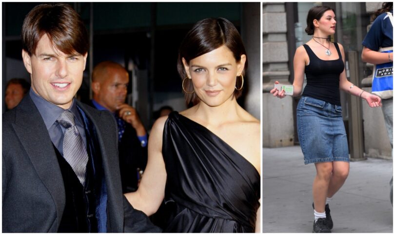 Fiica lui Tom Cruise a purtat recent un maiou negru, asortat cu o fusta din denim pana la genunchi, amintind de stilul de la inceputul anilor 2000. Tinuta ei a fost accesorizata cu mai multe bratari argintii si un colier negru de tip choker cu snur, impodobit cu un pandantiv cu o floare argintie de dimensiuni considerabile. Pentru a completa look-ul, ea a purtat adidasi negri si sosete albe inalte, care erau rasfirate la glezne in mod dezinvolt.